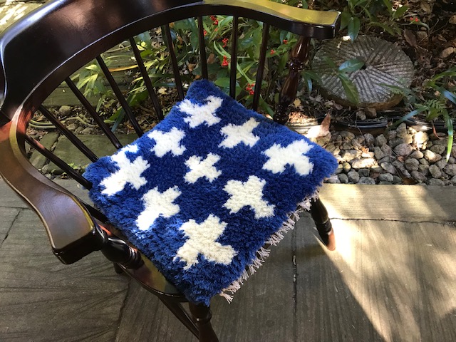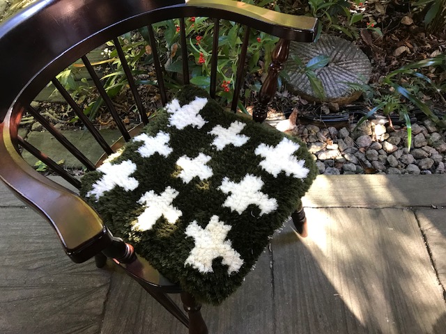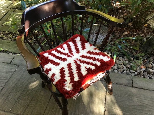 2021 あったか展 ノッティングの椅子敷き、蟻川工房のホームスパン、佐藤多香子さん、公基さんの裂き織り