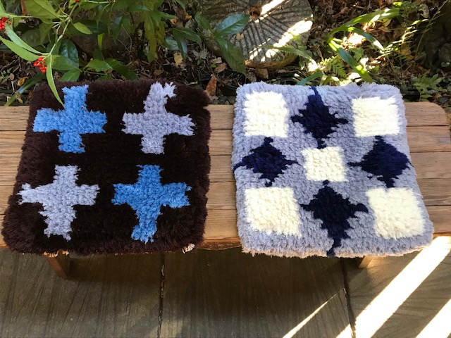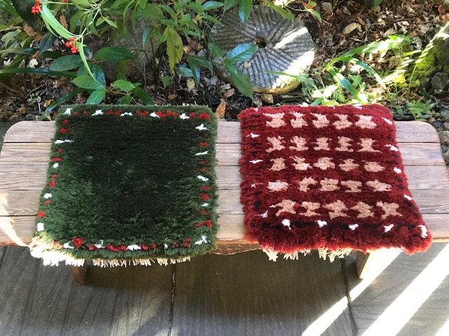 2021 あったか展 ノッティングの椅子敷き、蟻川工房のホームスパン、佐藤多香子さん、公基さんの裂き織り