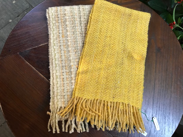 2021 あったか展 ノッティングの椅子敷き、蟻川工房のホームスパン、佐藤多香子さん、公基さんの裂き織り